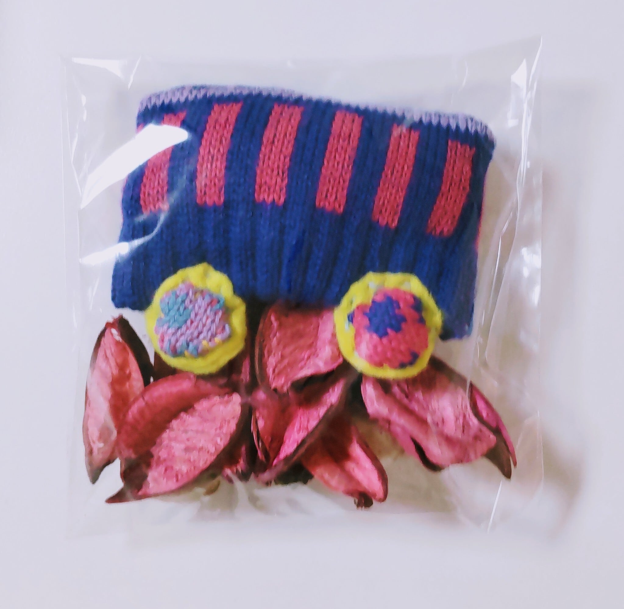 素材は、毛糸と糸と綿なので、赤ちゃんが間違って口に入れても安心です。