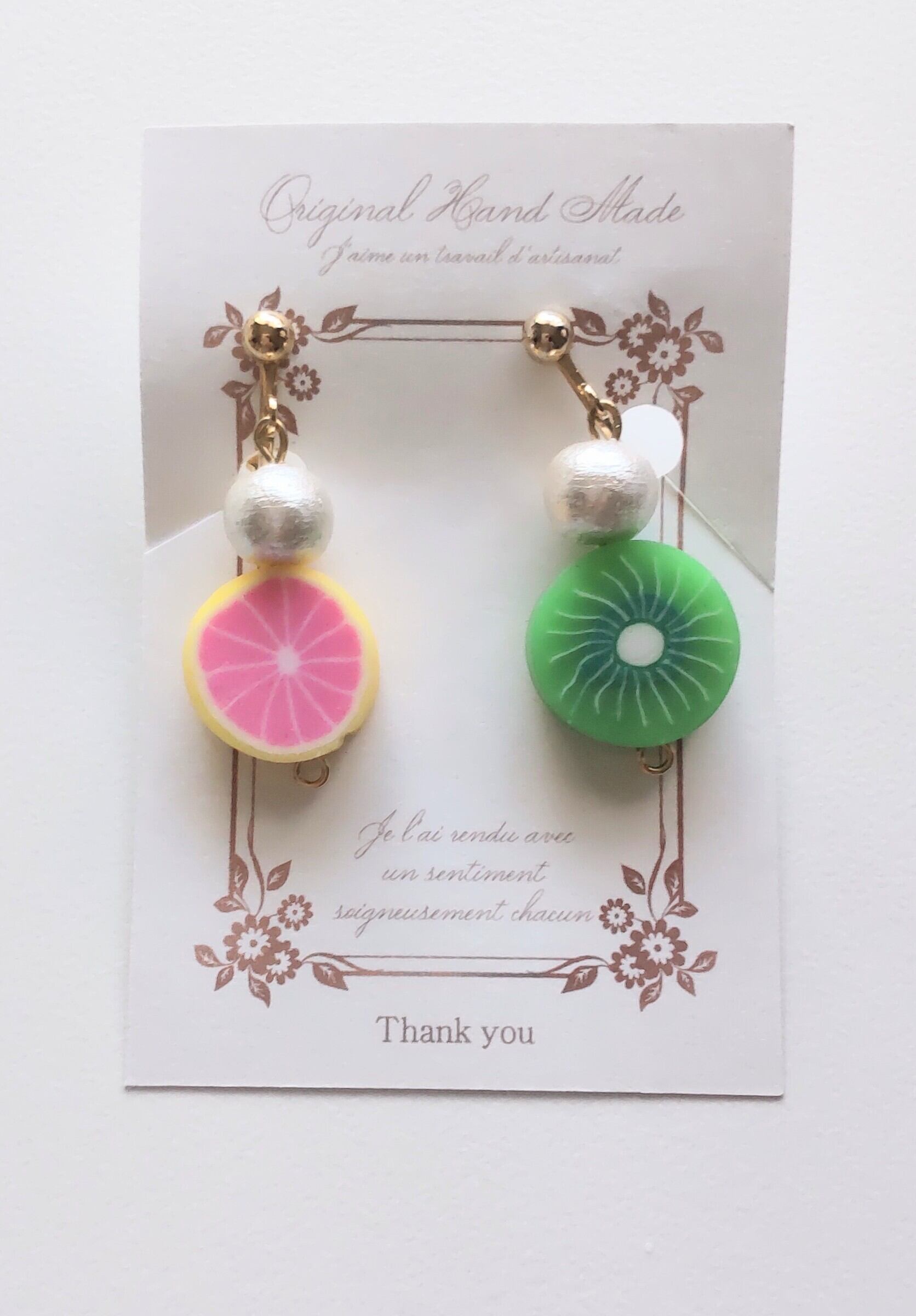 キウイとピンクグレープフルーツのピアス&イヤリング